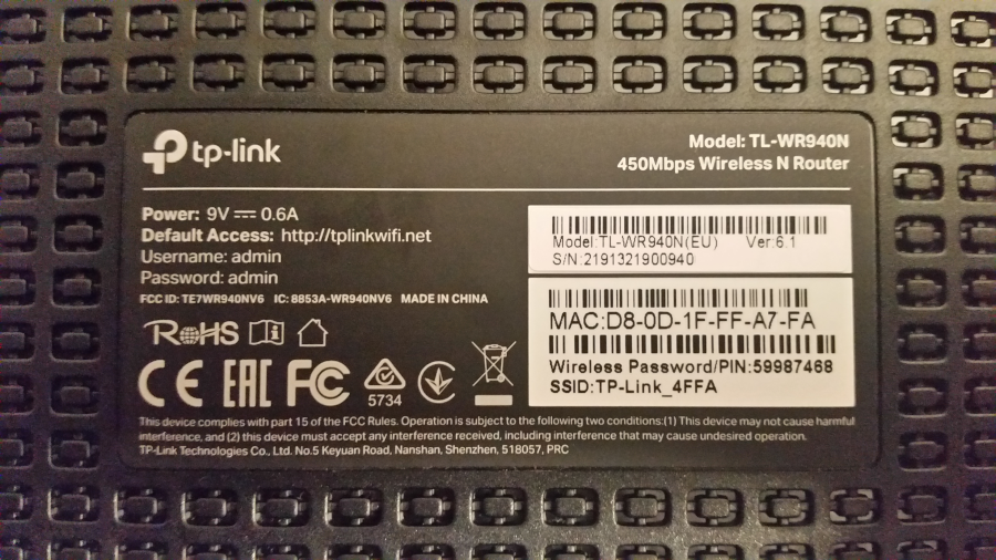 Im nachfolgend gezeigten Beispiel ist diese der Router-Typ TL-WR940N(EU) in der Hardware-Version 6.1 - beide Daten finden sich auf dem Typenschild überhalb der Seriennummer.